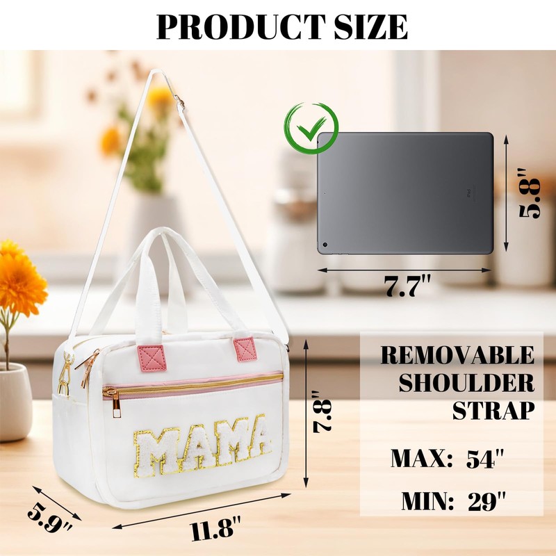 - MULTI POCKETS DESIGN: The handle bag with chenille letters mama looks very elegant. Front section with 2 padded elastic pouches to keep wearable breast pump safe and in place. The wearable pump bag also designed a mesh zipper pocket in front section for storing power cords, charger & small items, and a front zipper pocket for phone storage.