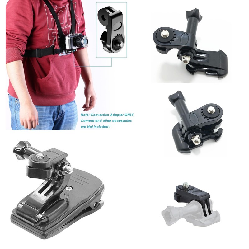 Wearable camera accessories with GoPro mount allow you to mount compatible small digital cameras, smartphones, wearable cameras, camcorders, wearable cameras and wearable cameras with 1/4" screw hole. Gopro accessories allow Sony Action Cam to be compatible with GoPro Pro accessories and enhance the versatility of wearable camera accessories.