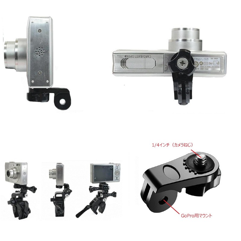 - Convert Gopro Mount to 1/4" Screw Adapter: Adaptor for attaching digital cameras and camcorders to housing mount with tripod screws (1/4 thread) Convert GoPro standard to 1/4 screw standard Compatible with GoPro mounts, autofocus cameras, action cameras (Xiaomi, Xiao Yi, Sony, AEE, JVC, etc.) Universal 1/4 inch camera, camcorder, smartphone, shooting LED light and other GoPro accessories