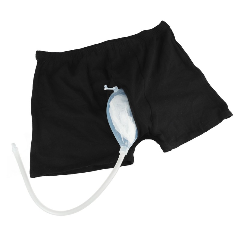 Wearable Men Urinal Bag Elastic Waistband Reusable Portable Male Shorts Pee Bag for Incontinence Elderly L