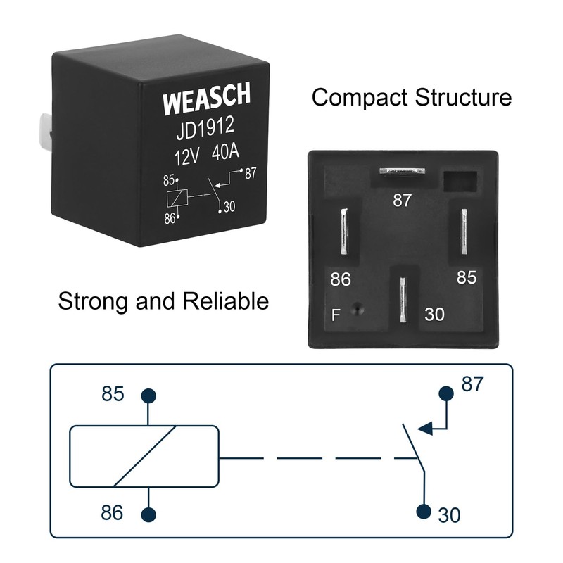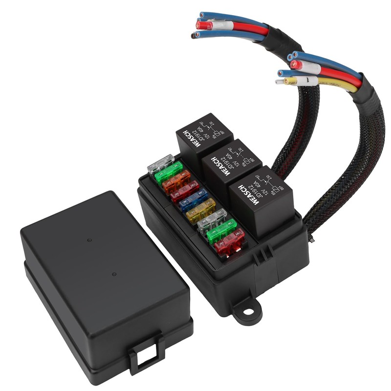 Weasch 12V Pre-Wired Fuse Relay Box, 3 Relays and 9 ATC/ATO Blade Fuses, 4-Pin 40A Relay Block and Kit, for Cars Truck Marine Boat Jeep