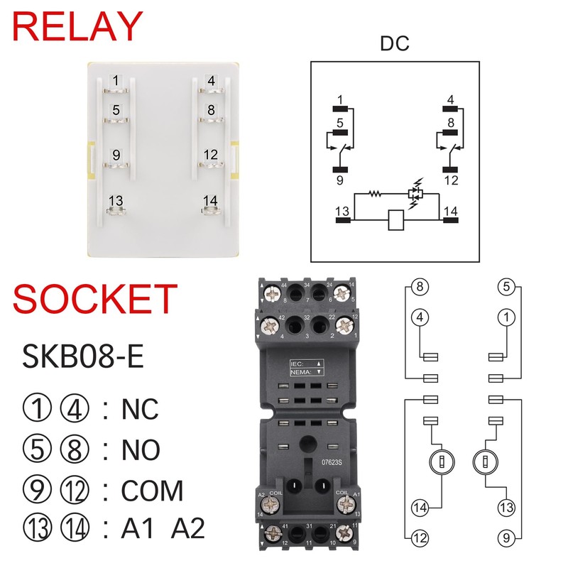 - Coil Voltage: DC 12V; Contact: DPDT - 2NO 2NC; Number of Pins: 8