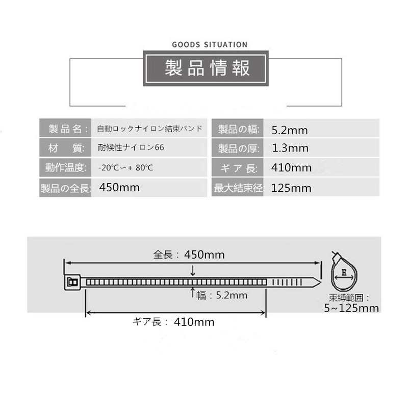Weather Resistant Heavy Duty Nylon Cable Ties Width: 0.2 inches (5.2 mm) (Pack of 100, Length 17.7 inches (450 mm)