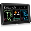 - 【Weather Station Indoor Outdoor Thermometer Wireless with 7.7 inch Display】Larger, clearer screen viewing angles, comfortable color, indoor outdoor temperature (°C/°F), inside outside humidity, barometric pressure, moon phase, calendar, atomic clock, weather forecast and trend, daily MAX/MIN data.