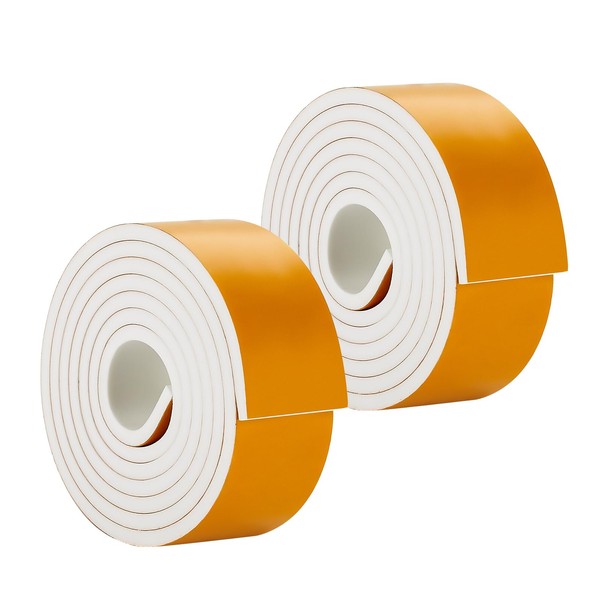 Weather Stripping Door Seal Strip 2"W * 1/4"T, Door Insulation Strip, High Density Foam Tape for Door Frame, Window, 13FT Length(6.5 FT X 2 Rolls, White)
