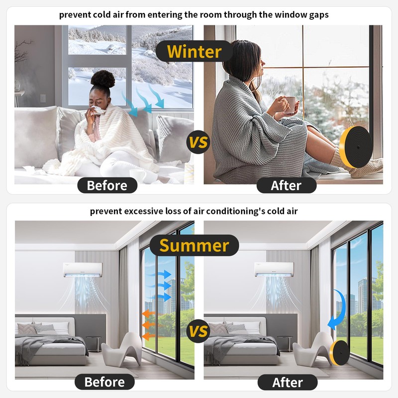 - Soundproofing--The air conditioner window seal strip has the characteristics of being weatherproof, dustproof, soundproof, shock-absorbing, buffering, and heat-insulating.The insulation foam helps to reduce or prevent creaks, vibrations, and squeaks caused by opening doors, windows, and moving furniture.