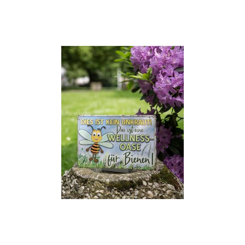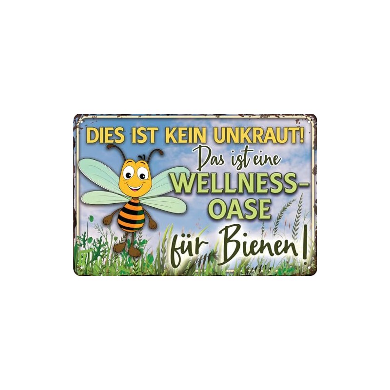 - Wellness tin sign with funny saying for nature lovers and bee fans