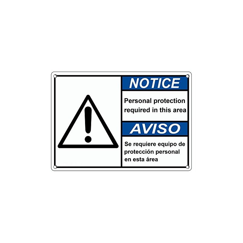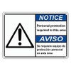 Weatherproof Plastic ANSI Notice PPE Required in This Area Bilingual Sign with English & Spanish Text and Symbol