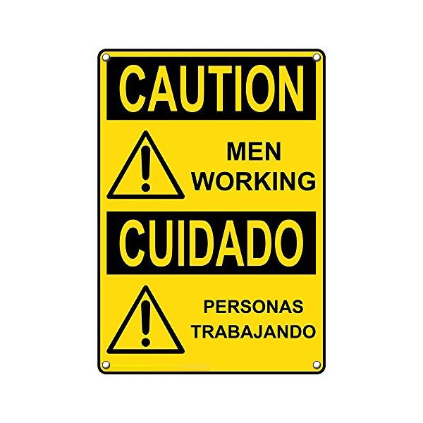 Weatherproof Plastic Vertical OSHA Caution Men Working - Personas Trabajando Sign with English & Spanish Text and Symbol