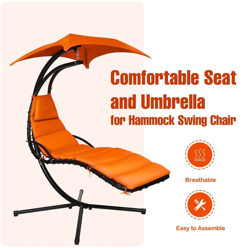 - ⭐️ REFRESH A LOUNGER Bring comfort to your chair! Give an old hanging lounge chair new life with this replacement cushion and umbrella set. Made of durable polyester, this cushion and umbrella fabric are resilient to withstand the outdoor elements and are easy to clean and maintain.