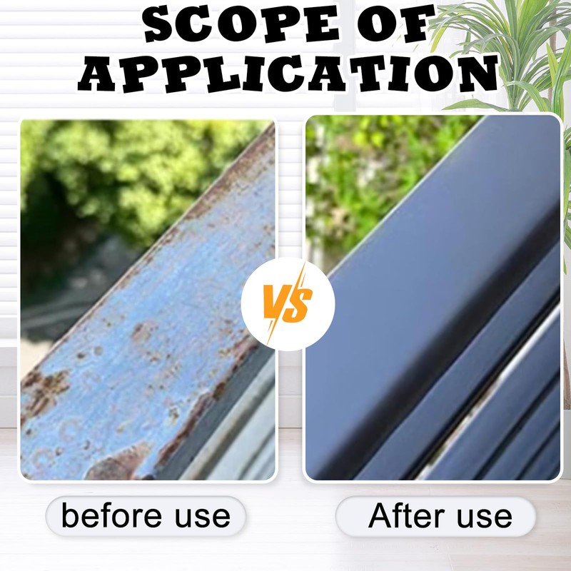 - Multi-purpose applications:This rust conversion agent has a wide range of applications and is ideal for removing rust from home, car and garden items( including metal railings, aluminum windows,color steel tiles,indoor and outdoor staircases and iron gates