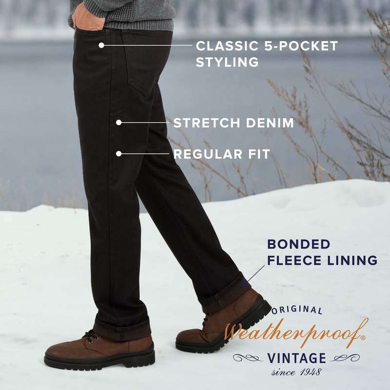 - MADE FROM PREMIUM MATERIALS: Made from premium and durable materials, these regular fit pants are anything but ordinary. Weatherproof takes pride in manufacturing high quality jeans from only the best materials. Made from 98% cotton and 2% spandex with 100% polyester fleece lining, you can count on these men’s denims to withstand the test of time