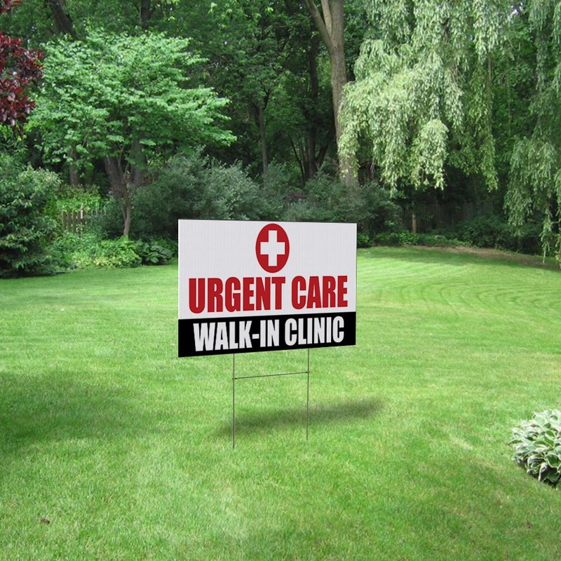 Weatherproof Yard Sign Urgent Care Walk-in-Clinic White Lawn Garden 24x18 Inches 1 Side Print
