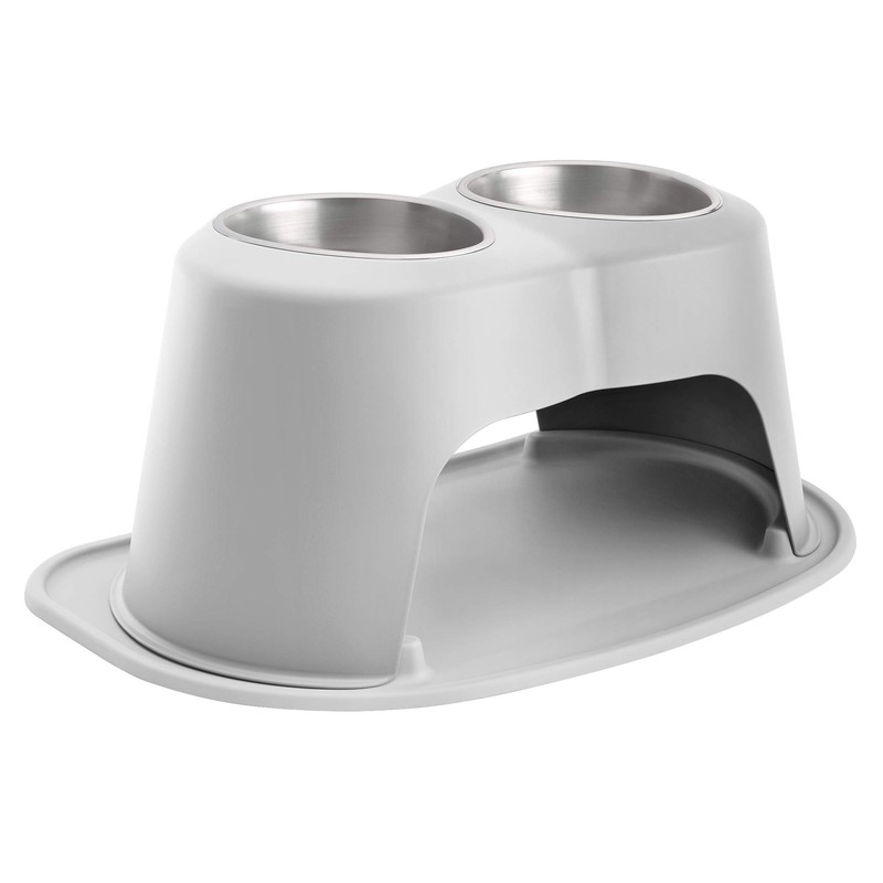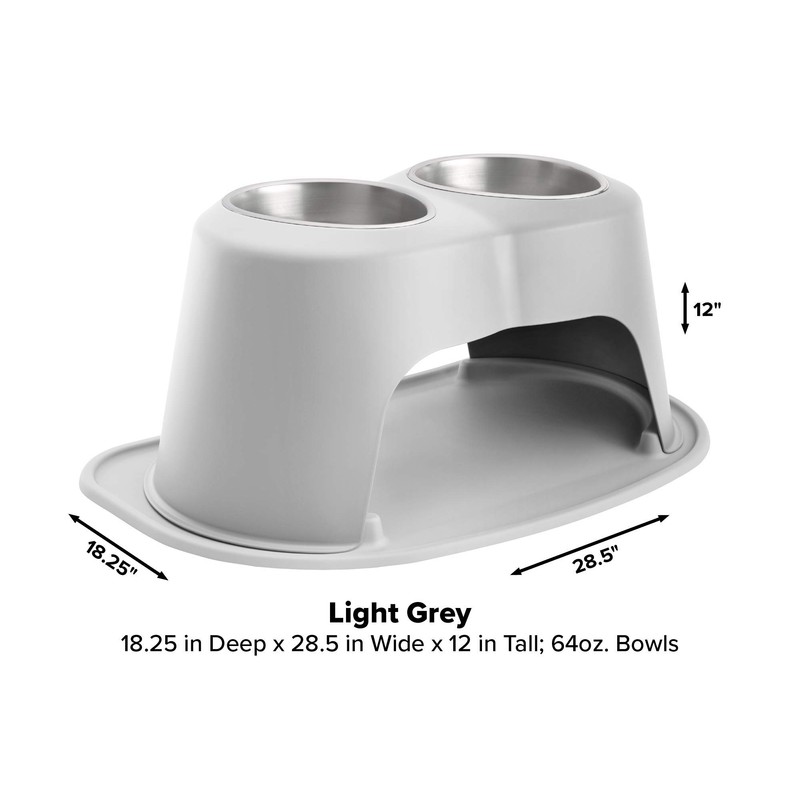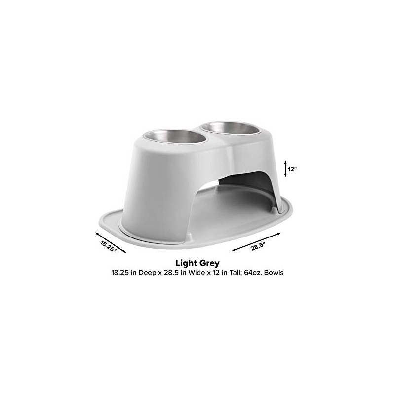 WeatherTech Double High Pet Feeding System - Elevated Dog/Cat Bowls - 12 inch High Light Grey (DHC6412LGLG)