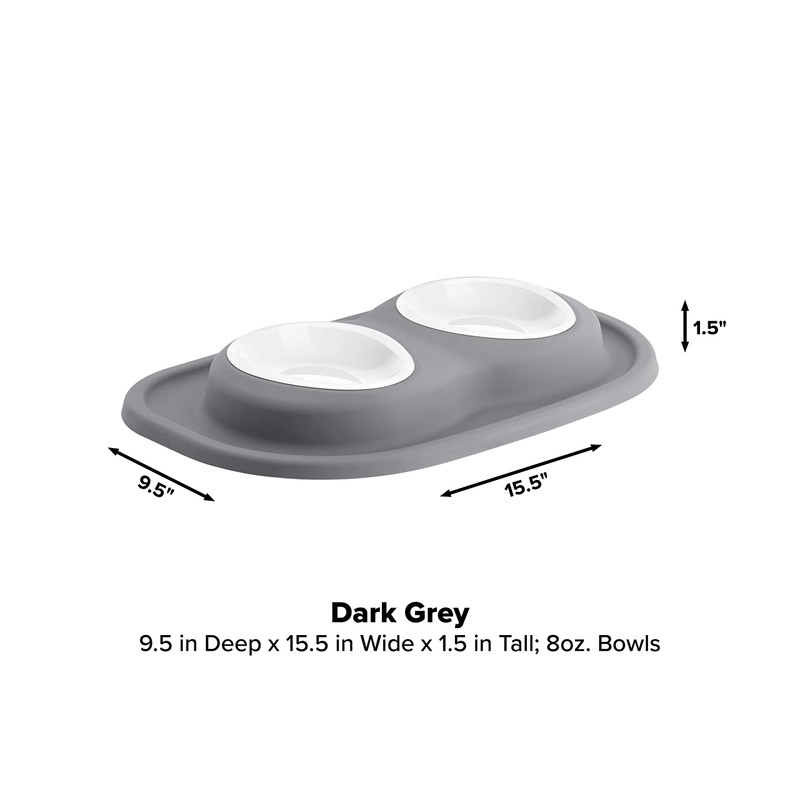 WeatherTech Double Low Pet Feeding System w/Plastic Dog/Cat Bowls - 8 oz (1 Cup) Dark Grey (PDL0801DG)