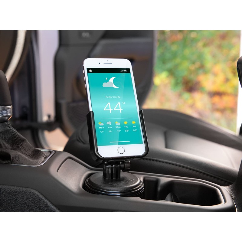 - PERFECT FIT C This phone mount features interchangeable base cups that allow it to fit snugly in most car, SUV, truck, RV, golf cart and boat cup holders