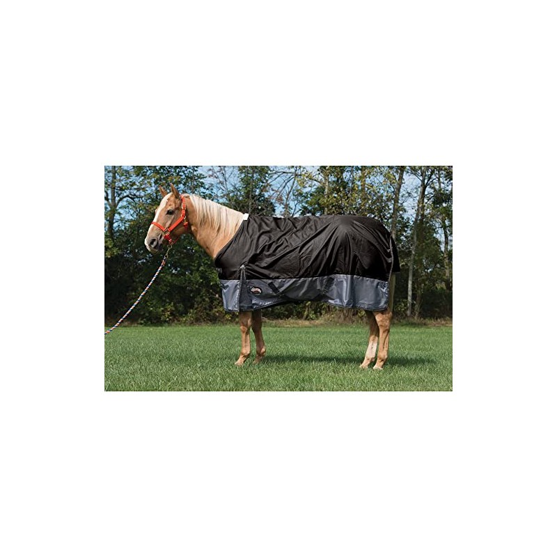 • With a comfortable, perfected fit, this premium turnout horse blanket is constructed from 600-denier ripstop material that offers waterproof performance while maintaining breathability. The fabric's outer membrane acts as a shield while the interior lets moisture and air escape, keeping your horse dry and comfortable. With a medium weight, 200-gram polyester fiber fill, this blanket is for outdoor use. Adjustable front closures with snap provide easy on and off.
