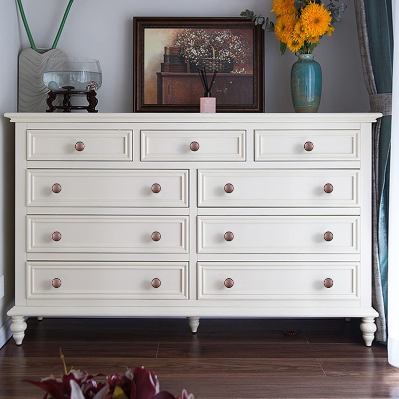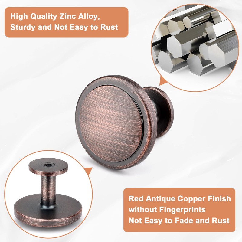 - ✅ Widely Use: Round cabinet knobs perfect for kitchen cabinet, furniture door, cupboard, desk drawer, wardrobe drawers, shoe cabinet, chest, bookcase and much more! Besides, we provide gold, black, oil-rubbed bronze and red copper, you can choose the appropriate color for installation according to the cabinet or drawer.