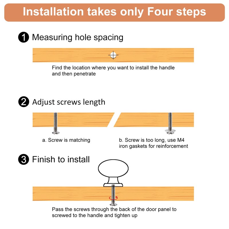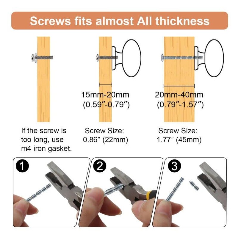 - ✅ Great Value Package: 10 x Drawer Pull Knobs, 10 x M4 Iron Gaskets, 10 x 0.86" and 10 x 1.77" Mounting Screws. Each drawers knobs is individually packaged to avoid scratches during transportation. If you have any questions, please feel free to contact us.