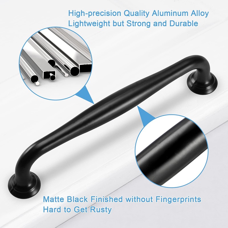WEAVERBIRD Cabinet Handles Matte Black 128mm Drawer Pulls Aluminum Alloy Rounded Foot Kitchen Hardware, 5" Hole Centers,Pack of 10