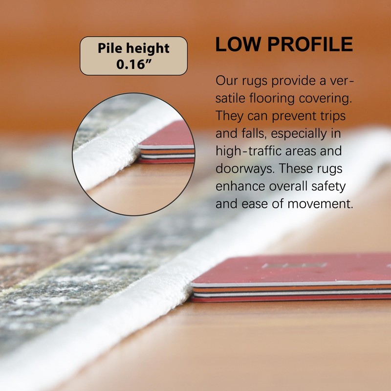 - FLAT WOVEN - This rug features a very sleek design and a low 0.16” pile height. Flat-woven non-shedding surface allows for convenient placement in entryways, underneath furniture, and will not obstruct doorways. Its soft face fabric also makes the rug ideal for your bathroom, bedroom and living room.