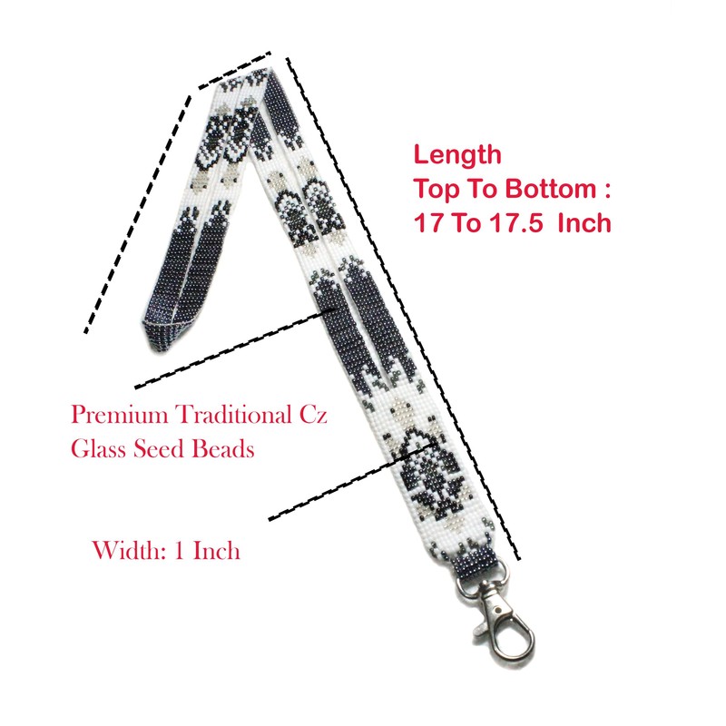 - Beaded Lanyard: This is a decorative cord typically worn around the neck to hold items like ID badges, keys, or small tools. In this case, it's embellished with beads in a Native American style, which could include specific patterns, colors, and symbols meaningful in Native American culture.