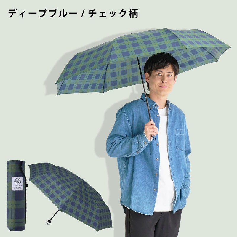 WEB Exclusive 10341 3 Second Urawaza Umbrella, Rain Umbrella, Large, UV Wide, Folding Umbrella, 23.6 inches (60 cm), Check, deep blue