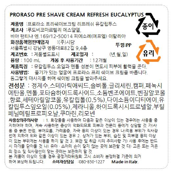 대구백화점 프로라소프로라소 프리쉐이브크림-리프레쉬