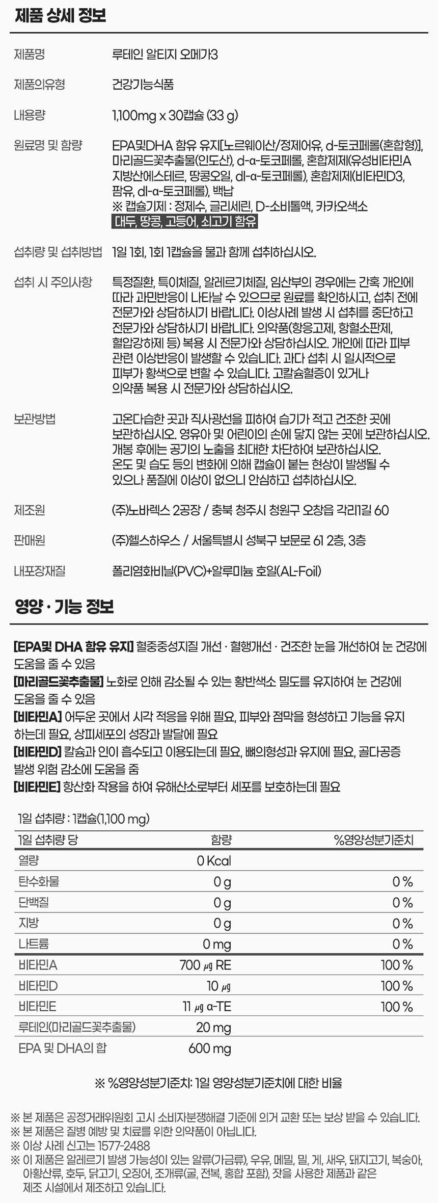 • 「건강기능식품에 관한 법률」에 따른 유전자변형건강기능식품 표시: 유전자변형건강기능식품여부:대상아님