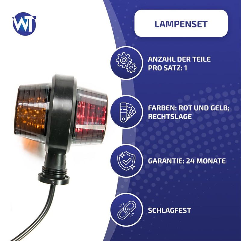 - 2 functions: red and yellow (orange), red rear position light, orange-yellow side marker light, which complies with the latest European road safety standard.