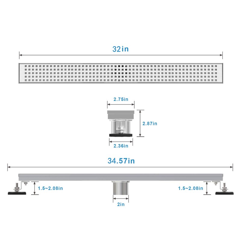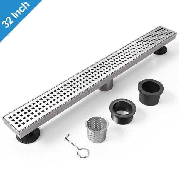 • 【Shower Drain Design】- The 32 inch linear drain cover with quadrato pattern cover design, enhancing water flow. Embedded design offer a invisible and seamless look on your floor. Heavy duty steel cover offer a good sealing ability.