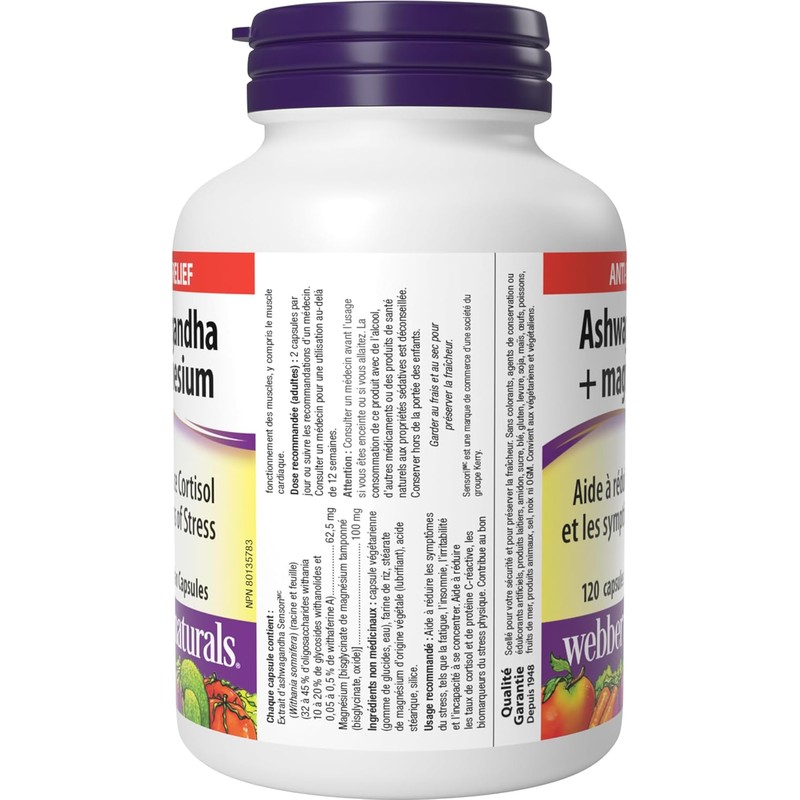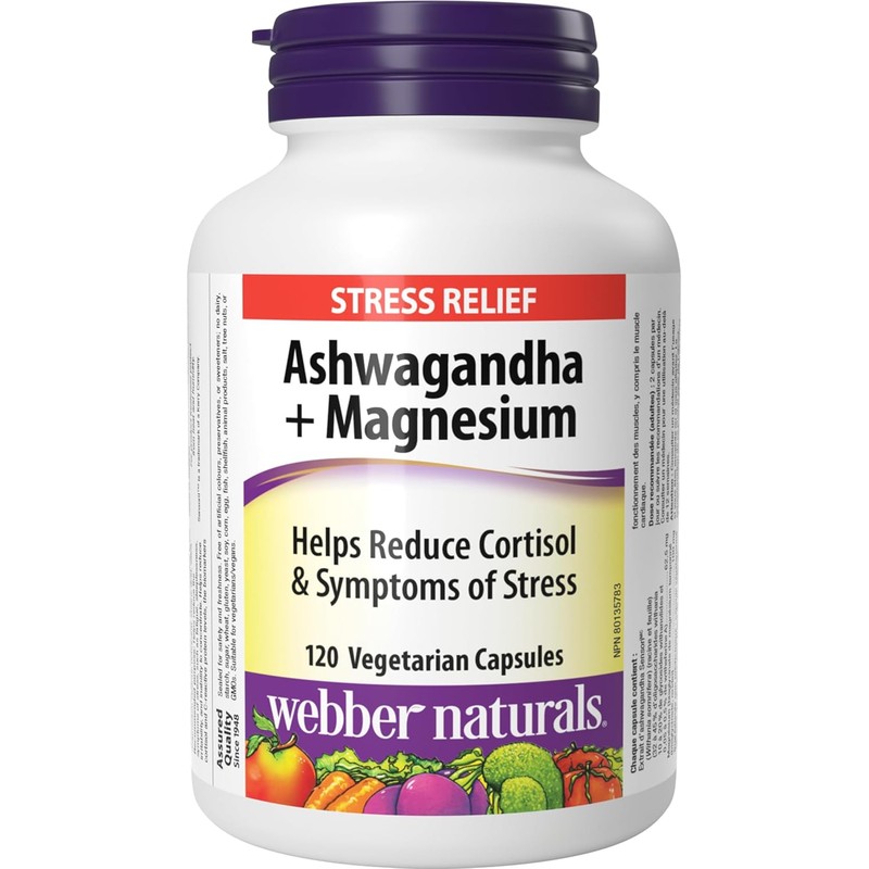 Webber Naturals Ashwagandha + Magnesium – Stress Relief & Cortisol Support, 120 Capsules