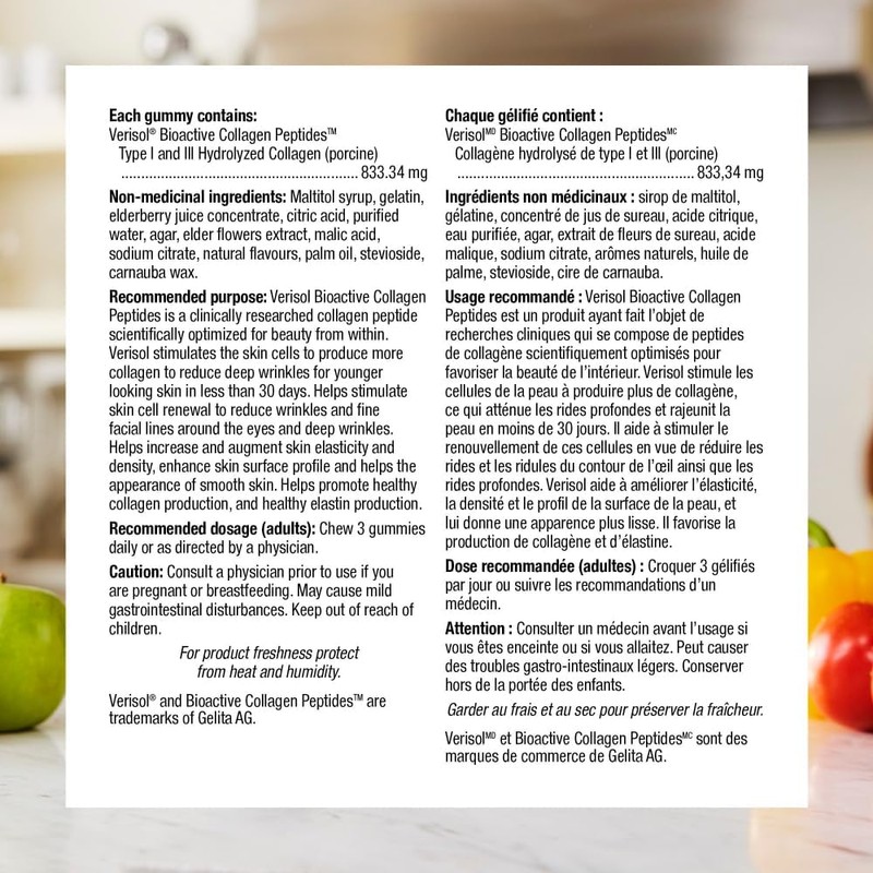 - Gummy Format: Each serving of elderberry-flavoured gummies provides 2500 mg of Collagen30