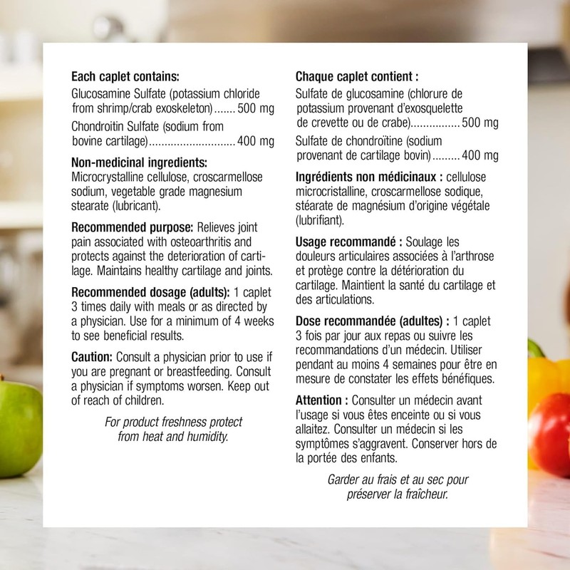 - Easy-to-Swallow Caplets: Each caplet contains 500 mg of Glucosamine Sulfate and 400 mg of Chondroitin Sulfate