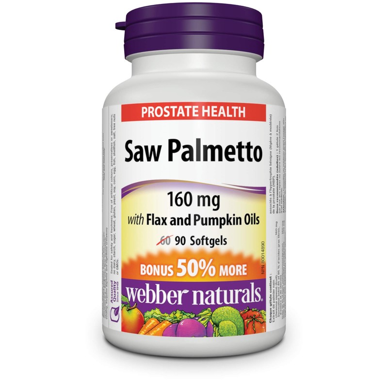Webber Naturals Saw Palmetto with Flax and Pumpkin Oil, Softgel, 160 mg , 160 mg , 120 mg, 90 Count