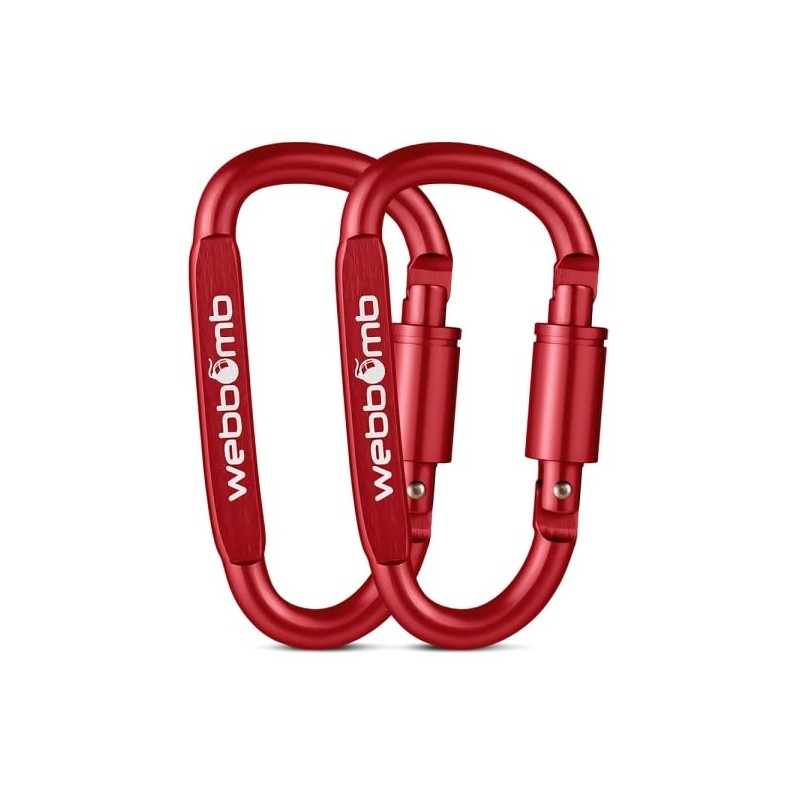 WEBBOMB® Pack of 2 Carabiner Hooks with Screw Cap, 80 mm, Screw Carabiner, Aluminium Carabiner Hook for Prams, Dogs, Sports, Equestrian, Camping, Hiking, Fishing, Key Ring