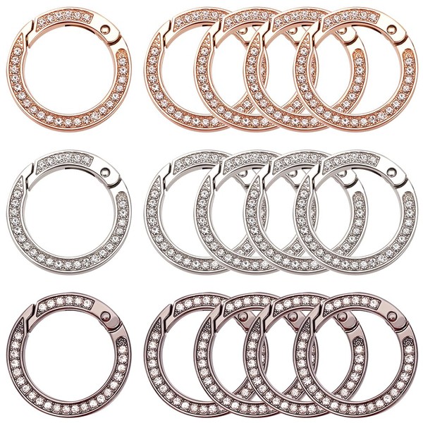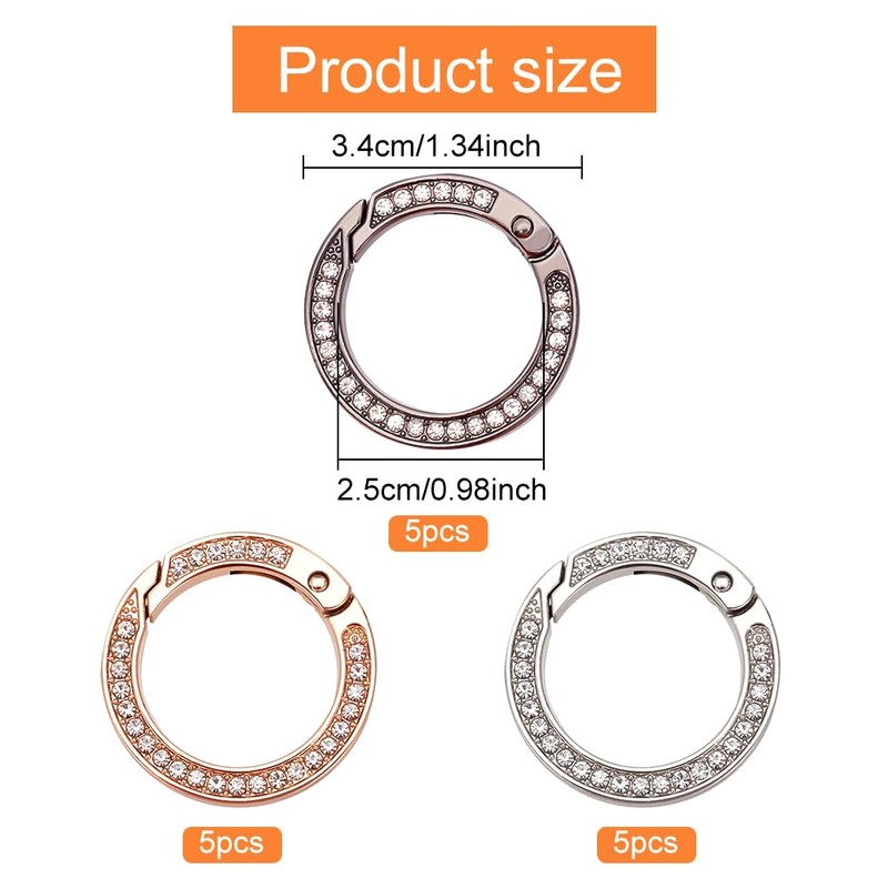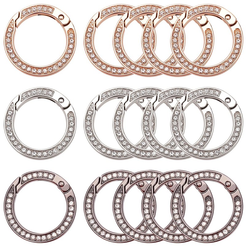 WEBEEDY 15 Pcs Rhinestone Spring O Rings Round Carabiner Snap Clip Buckle Spring Key Ring for Keyring Bags Purse Strap Car Keychain, Inner Diameter 0.98"