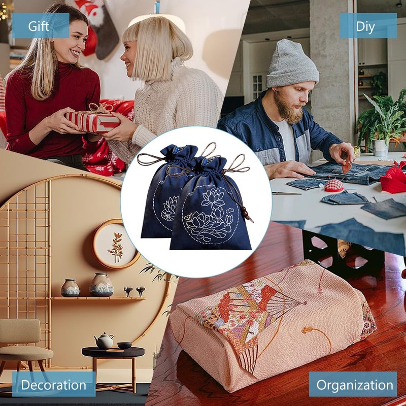 - Sashiko Drawstring Bag Making: The Sashiko embroidery kit includes all the materials you need to make 2 drawstring bags with lotus flower pattern, including 2 set complete material package and 1 pc imitation bamboo embroidery hoop frames.