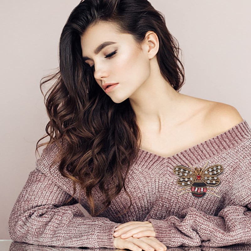 WEBEEDY 3 Pcs Handmade Rhinestone Beaded Patches Sew on Crystal Bee Butterfly Dragonfly Appliques Decorative Badge Sewing Accessories for Clothes Bag Pants Shoes Hats DIY Projects
