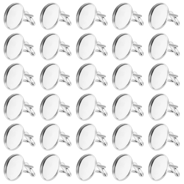 WEBEEDY 30pcs Stainless Steel Cuff Link Base Blanks Round Cabochon Setting Tray for Men Cuff Button DIY Making (20mm)