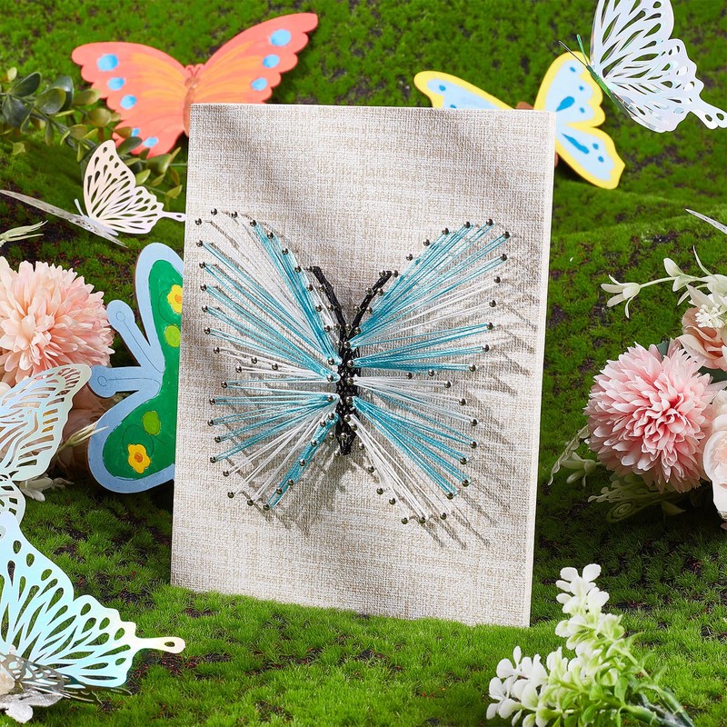 WEBEEDY 3D String Art Kit for Beginners Adults DIY Butterfly Craft Set with Full Tool 3D Drawing Nails Winding Lines Winding Drawing for Christmas Party Home Decor Gift