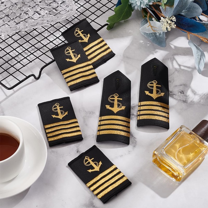 - Slide to use: our epaulettes can be slid onto most shirt and jacket epaulets, gold anchor and 4 golden stripes with a black fabric design will accentuate your outfit and provide an elegant and refined look.