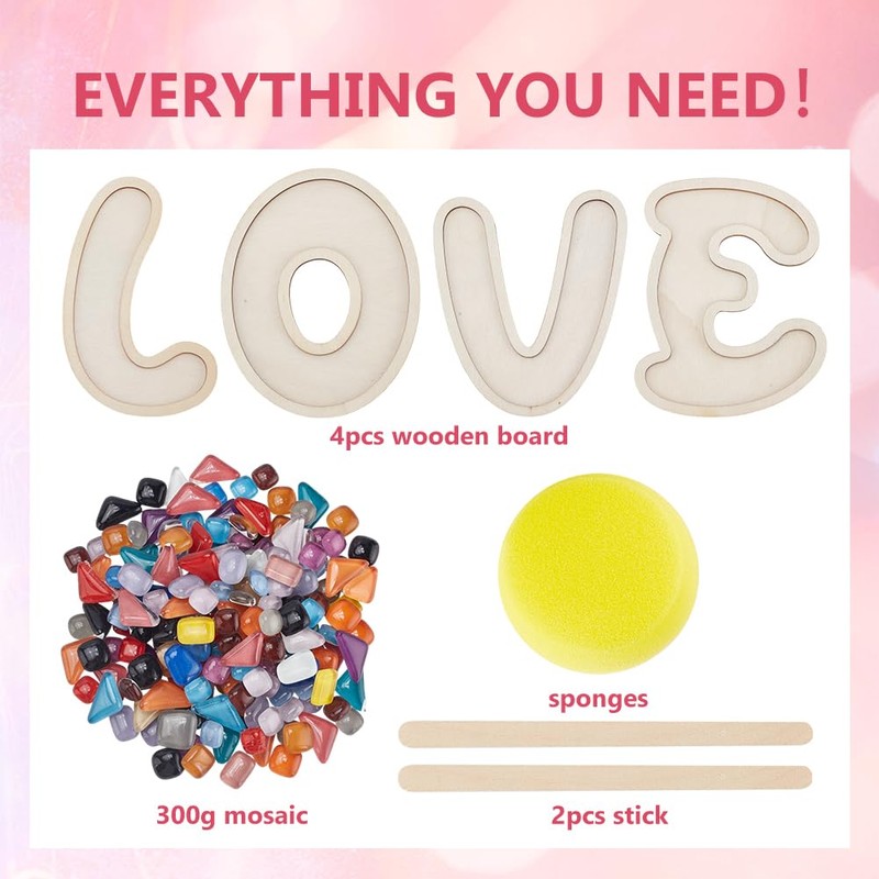 • Coaster making set: NO CAULK AND GLUE INCLUDED.The package you received contains 4 pcs LOVE coaster,300g mixed color glass mosaic tiles to meet your needs,2 wooden sticks,1 absorbent sponge