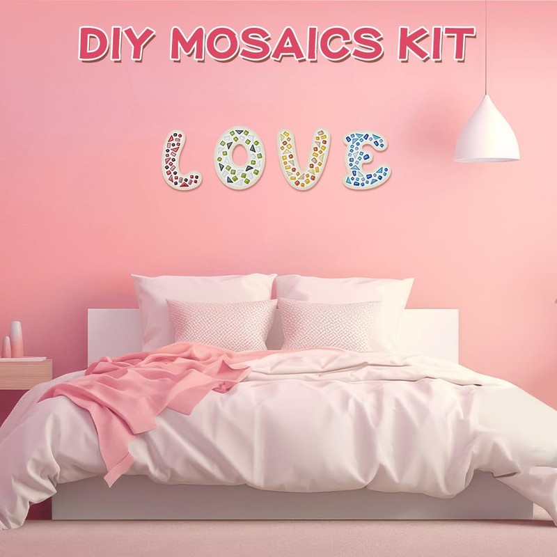 WEBEEDY 4 Sets DIY Glass Mosaic Tiles Kit Love Mosaic Coaster Making Kit with...