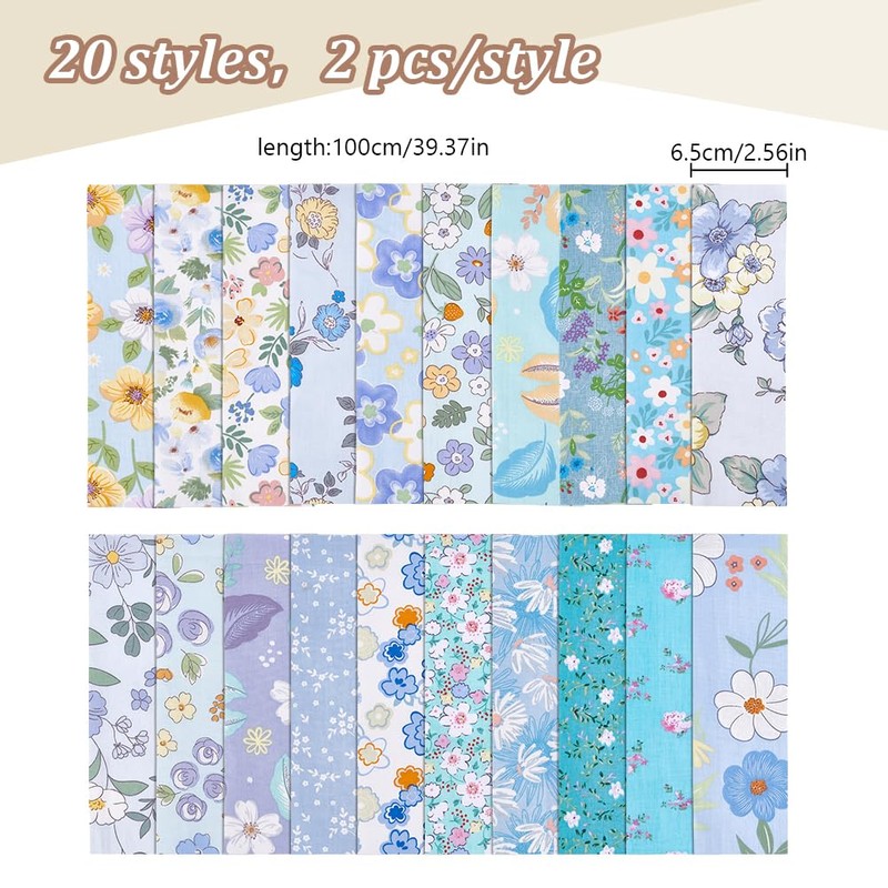 - Sufficient Quantity: You will get 40pcs of blue fabric strips, with 20 styles different vibrant flower print patterns. Sufficient quantity to meet your DIY needs, these fabric strips are perfect for bringing your creative ideas to life