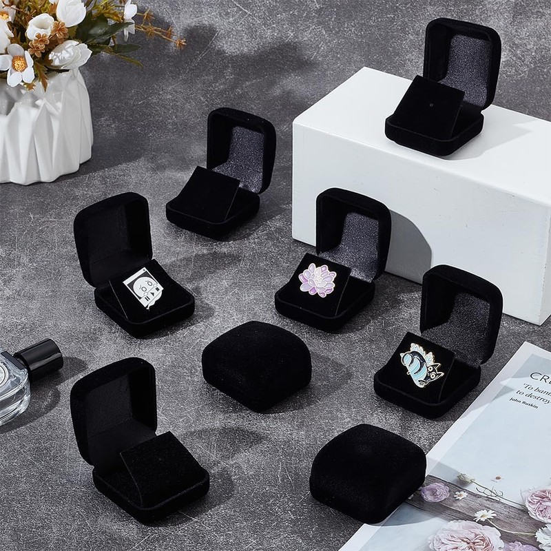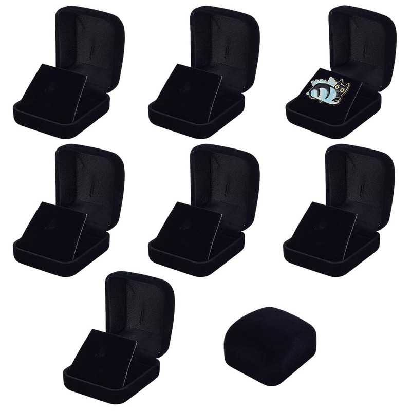 WEBEEDY 8 Pcs Black Velvet Brooch Display Case Lapel Badge Display Holders Challenge Coin Display Case Velvet Jewelry Box Gift Box for Pins Coin Medal Jewelry, 5.3x5.9x3.7cm/2.09x2.32x1.46