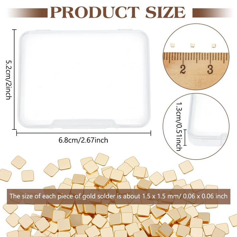 - Size information: Each gold solder measures approximately 1.5 x 1.5 mm/ 0.06 x 0.06 inches, which is small and delicate to use, can be nicely attached to the jewelry, making them perfect for delicate tasks