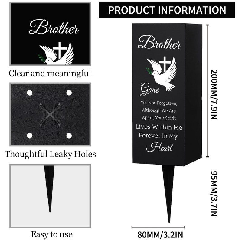 - Memorial decoration for brother cemetery: the package you receive contains 1 metal flower vase for the cemetery with spike and the surface is decorated with warm words to honor your brother