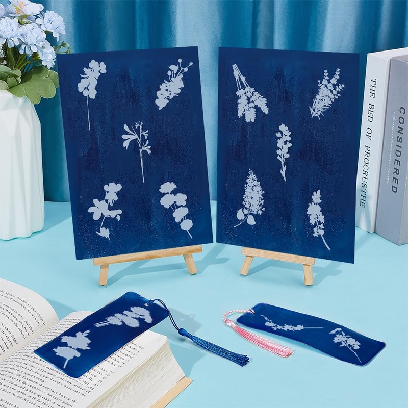 • Value Pack: You will receive 30 sheets of sun print paper,2 bottle of blue tanning solution,1 blue tanning folder holder,10 colorful tassels,10 bookmarks,1 packs of flower stickers and other tools needed to create