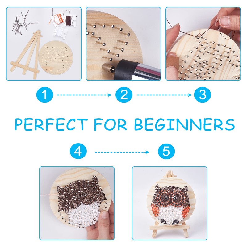 - Owl Design: Drive a nail into each drill hole and start enjoying the fun of winding strings and creating art. Make your own owl crafts. The owl symbolizes the pursuit of perfection and beauty.